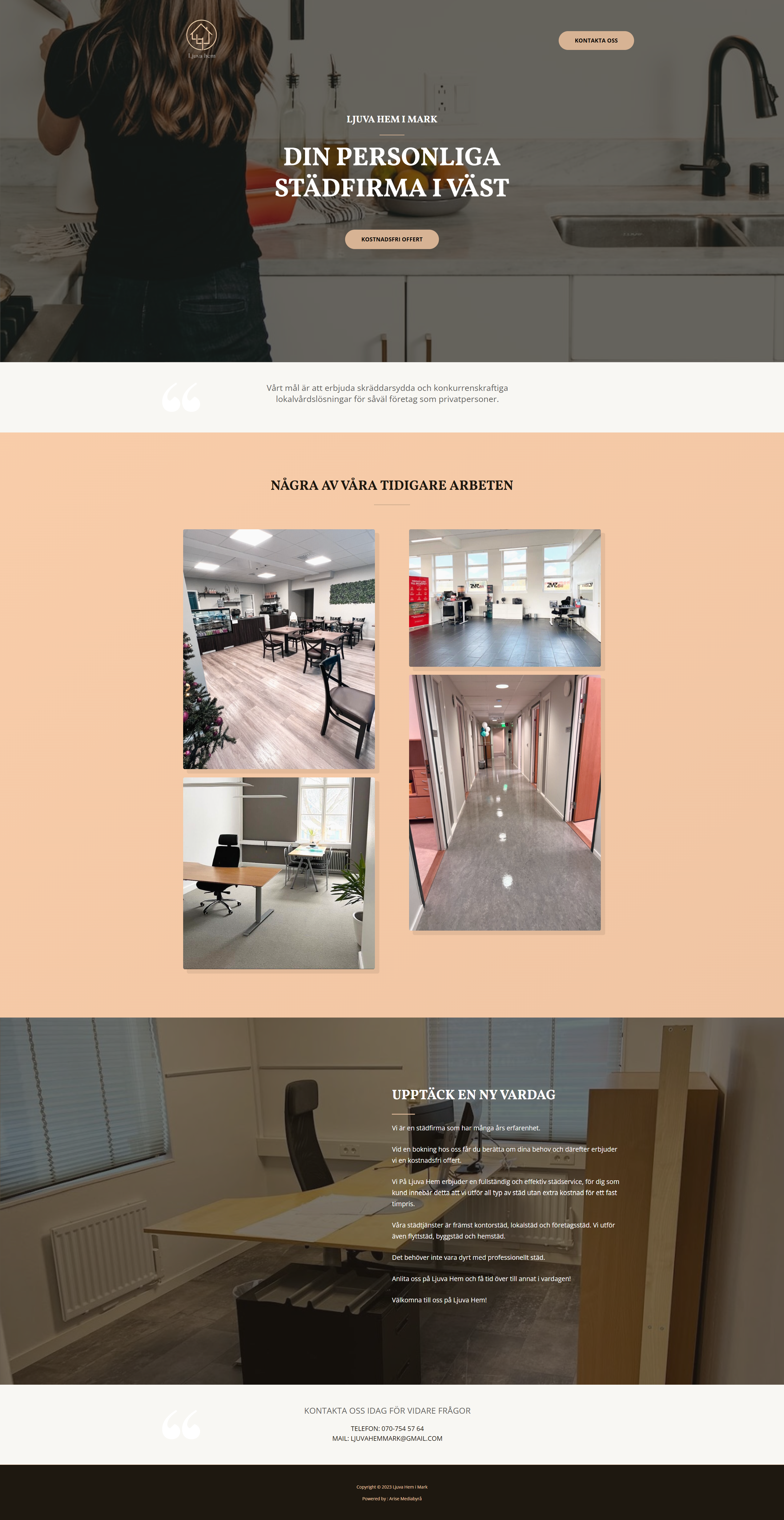 Vi har haft förtroendet att ta fram den nya webbplatsen åt Ljuva Hem i Mark, en städfirma med fokus på kvalitet, noggrannhet och personlig service.Målet var att skapa en modern och förtroendeingivande webbplats som tydligt presenterar deras tjänster. Resultatet är en ljus, ren och lättnavigerad design som speglar deras professionalism och känsla för ordning.